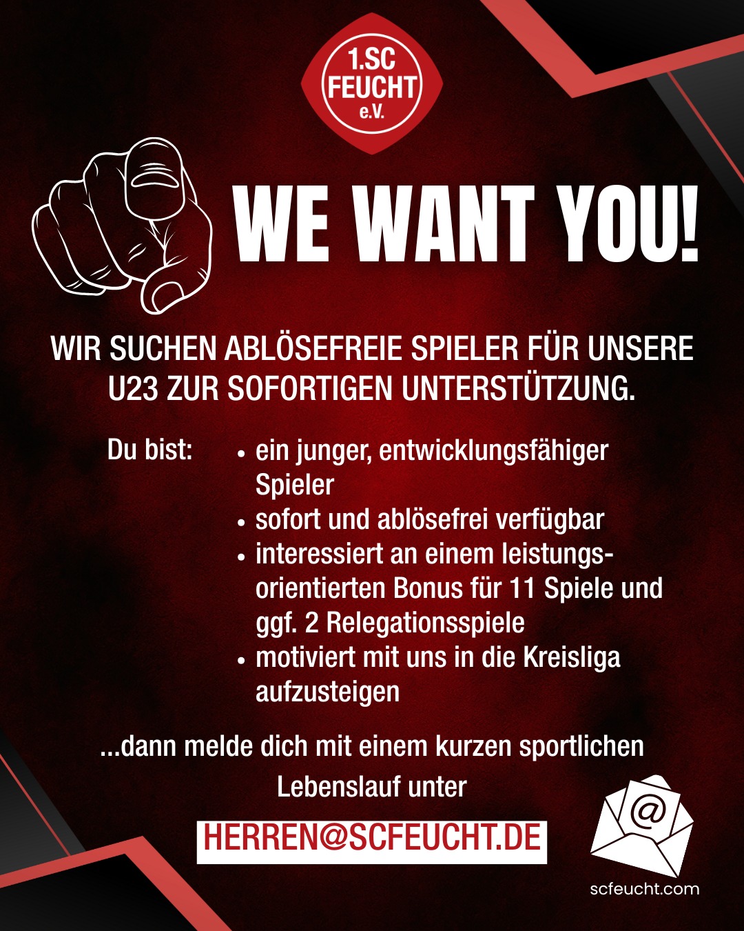 U23 - Wir suchen für unsere U23 ablösefreie Spieler zur sofortigen Unterstützung.