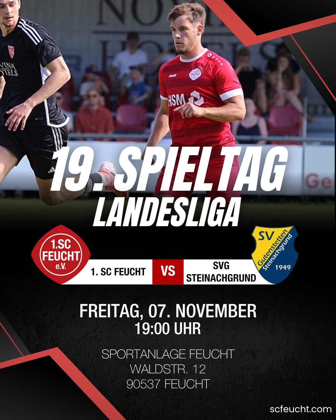 Landesliga Nordost - In der Landesliga Nordost steht am Freitagabend der 18. Spieltag an. Der 1.SC Feucht empfängt im ersten Heimspiel der Rückserie den SV Gutenstetten-Steinachgrund im Waldstadion. Nach zuletzt 7 Punkten in 3 Spielen und generell einer positiven Leistungskurve in den letzten Wochen hat sich der SC im Mittelfeld der Tabelle etabliert.