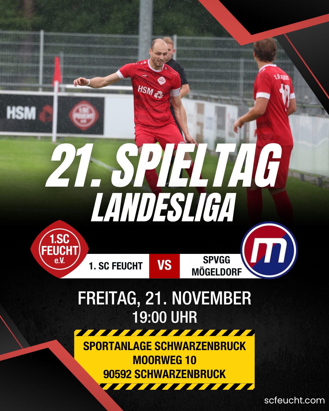 Landesliga Nordost - In der Landesliga Nordost kommt es am Freitagabend zum bereits 21. Spieltag. Der 1.SC Feucht empfängt die SpVgg Mögeldorf. Das Spiel findet aufgrund der anhaltenden Temperaturen nicht wie gewohnt im Feuchter Waldstadion statt, sondern auf dem Kunstrasenplatz des TSV Ochenbruck.
