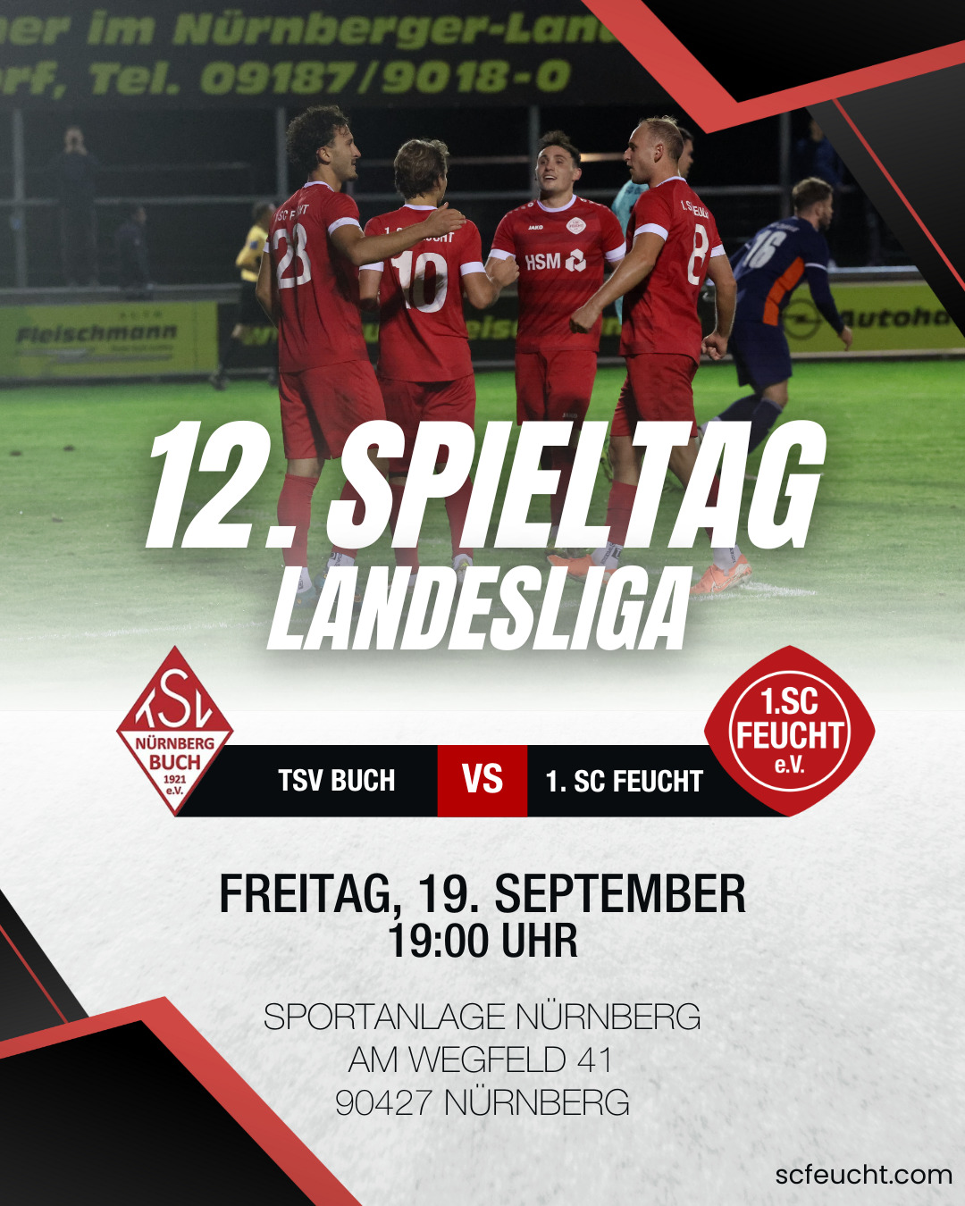 Landesliga Nordost - In der Landesliga Nordost kommt es am Freitagabend im Nürnberger Knoblauchsland zu einem Nachbarschaftsduell. Weder geographisch noch sportlich trennt den TSV Buch und den 1.SC Feucht aktuell wenig voneinander. Beide Teams laufen in der bisherigen Spielzeit Ihren sportlichen Erwartungen hinterher. So steht der TSV noch ohne Saisonsieg mit 5 Punkten am Tabellenende, während die Gäste aus Feucht nun schon seit 5 Spielen auf einen Erfolg warten.